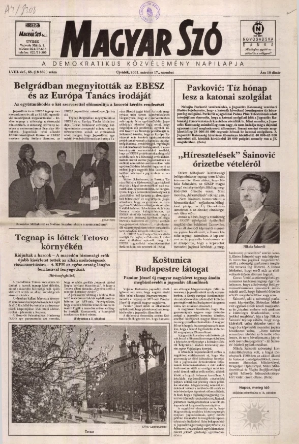Magyar Szó, 58. évf. 2001. március 17. 63. sz. 1–16. oldal