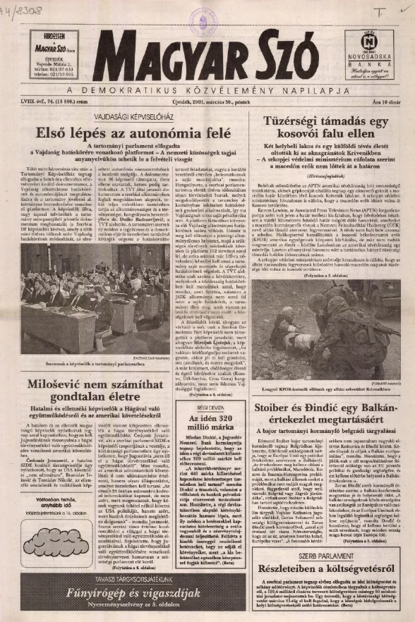 Magyar Szó, 58. évf. 2001. március 30. 74. sz. 1–16. oldal
