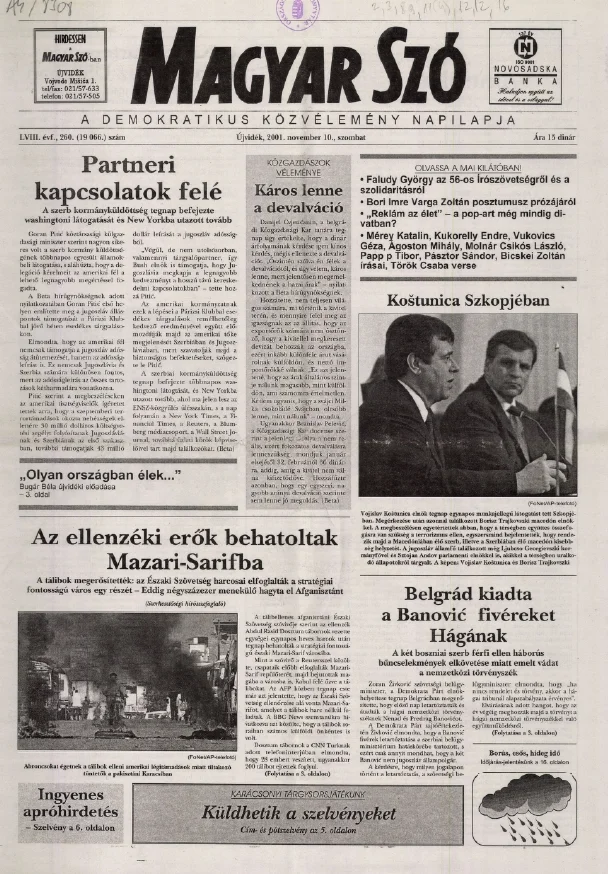 Magyar Szó, 58. évf. 2001. november 10. 260. sz. 1–16. oldal