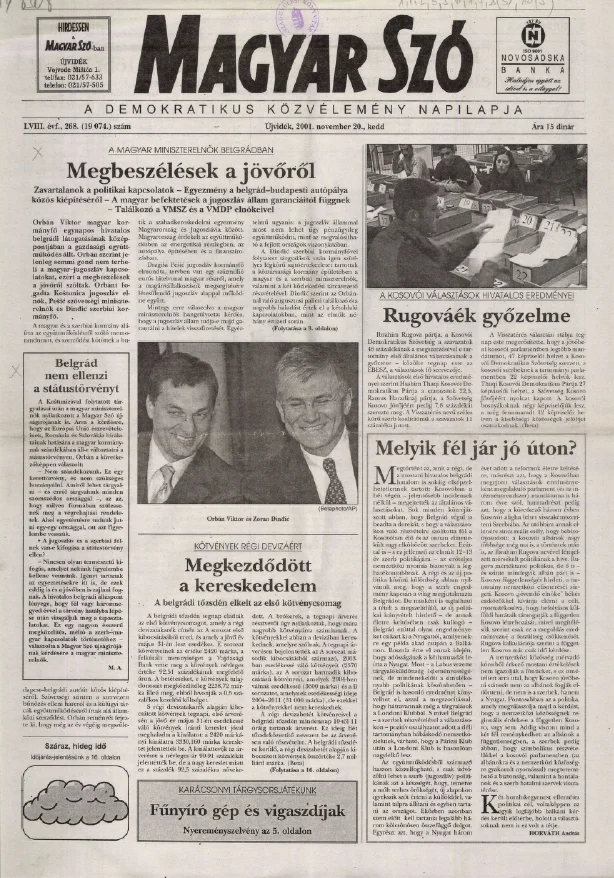 Magyar Szó, 58. évf. 2001. november 20. 268. sz.