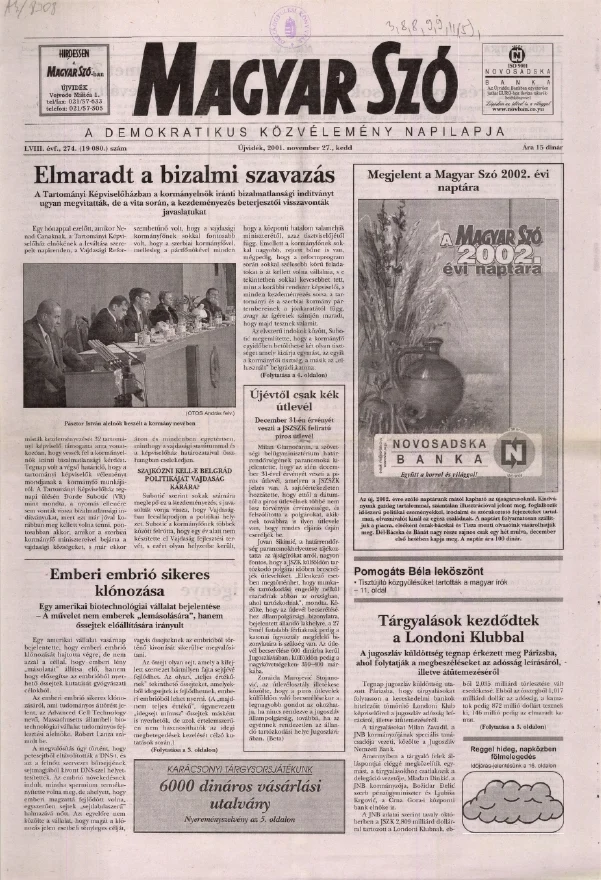 Magyar Szó, 58. évf. 2001. november 27. 274. sz. 1–16. oldal