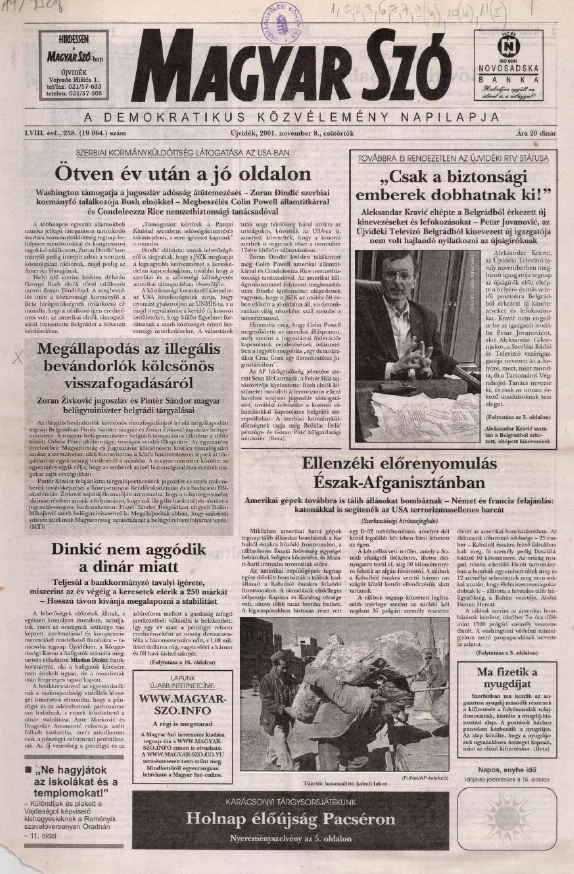 Magyar Szó, 58. évf. 2001. november 8. 258. sz. 1–16. oldal