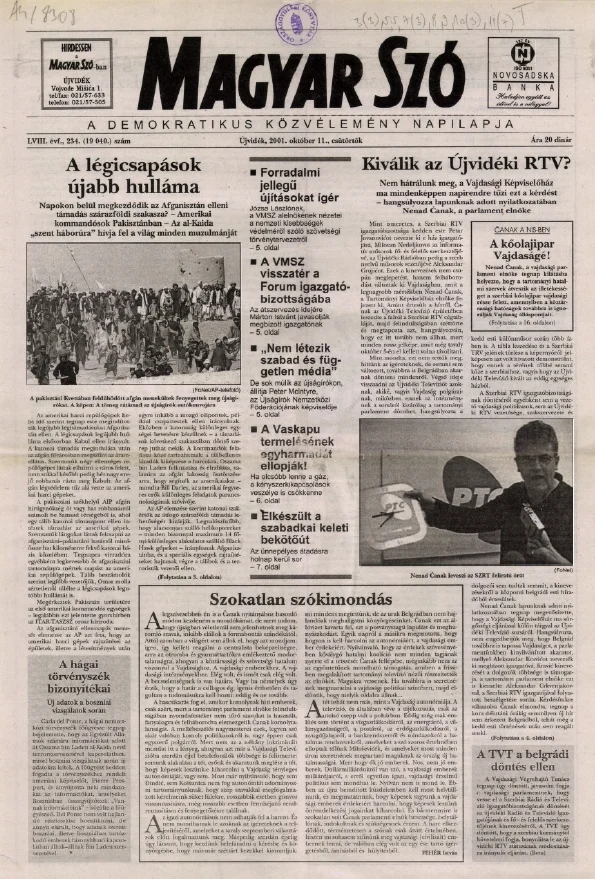 Magyar Szó, 58. évf. 2001. október 11. 234. sz. 1–16. oldal