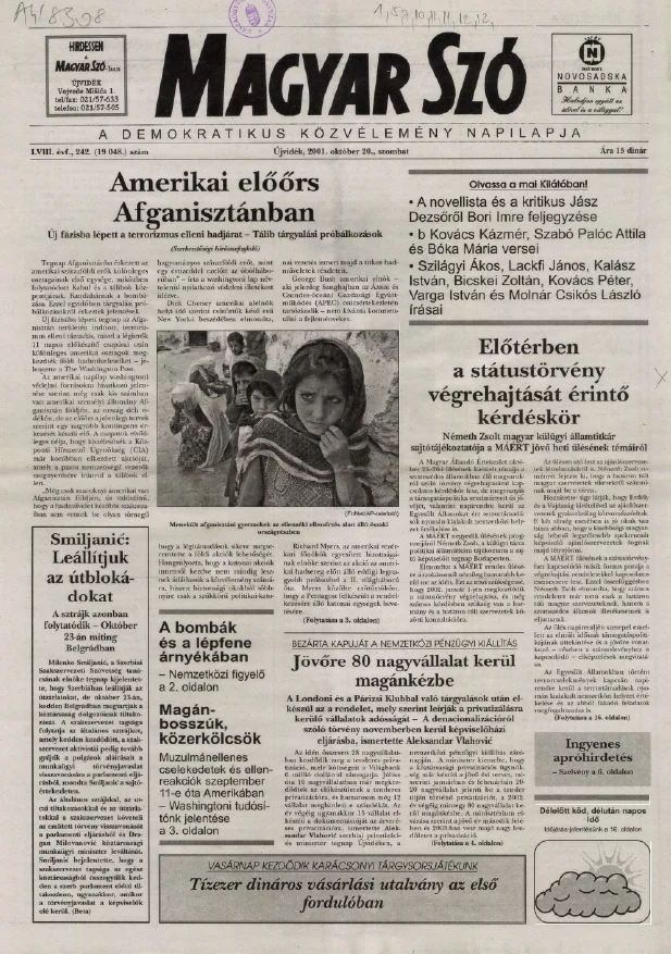 Magyar Szó, 58. évf. 2001. október 20. 242. sz. 1–16. oldal