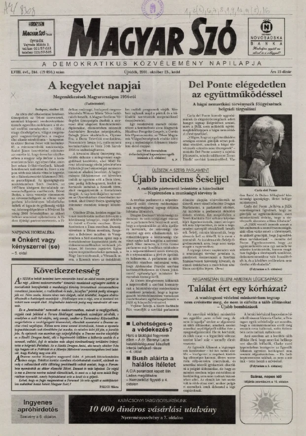 Magyar Szó, 58. évf. 2001. október 23. 244. sz. 1–16. oldal