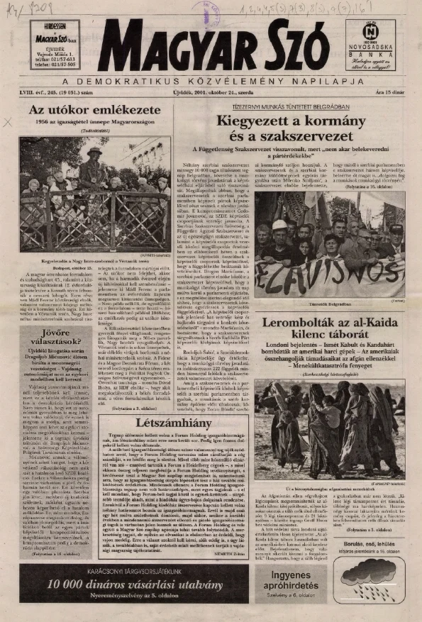 Magyar Szó, 58. évf. 2001. október 24. 245. sz. 1–16. oldal