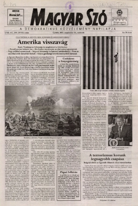 Magyar Szó, 58. évf. 2001. szeptember 13. 209. sz. 1–16. oldal