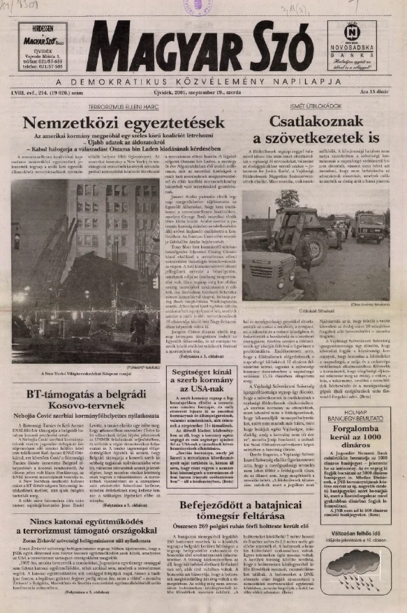 Magyar Szó, 58. évf. 2001. szeptember 19. 214. sz. 1–16. oldal
