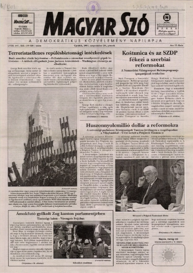 Magyar Szó, 58. évf. 2001. szeptember 28. 222. sz. 1–16. oldal