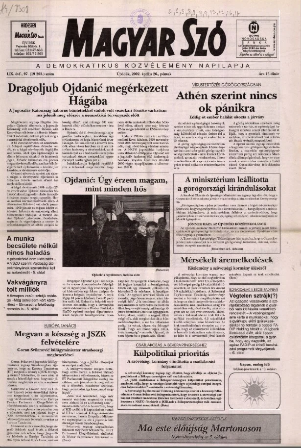 Magyar Szó, 59. évf. 2002. április 26. 97. sz. 1–16. oldal