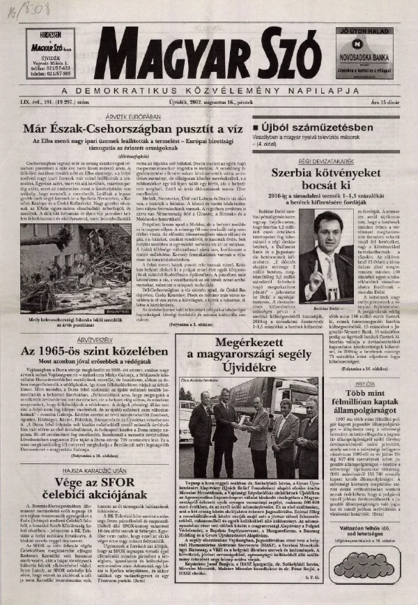 Magyar Szó, 59. évf. 2002. augusztus 16. 191. sz. 1–16. oldal