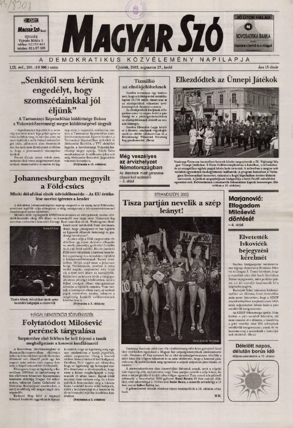 Magyar Szó, 59. évf. 2002. augusztus 27. 200. sz. 1–16. oldal