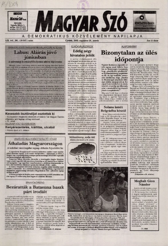 Magyar Szó, 59. évf. 2002. augusztus 28. 201. sz. 1–16. oldal