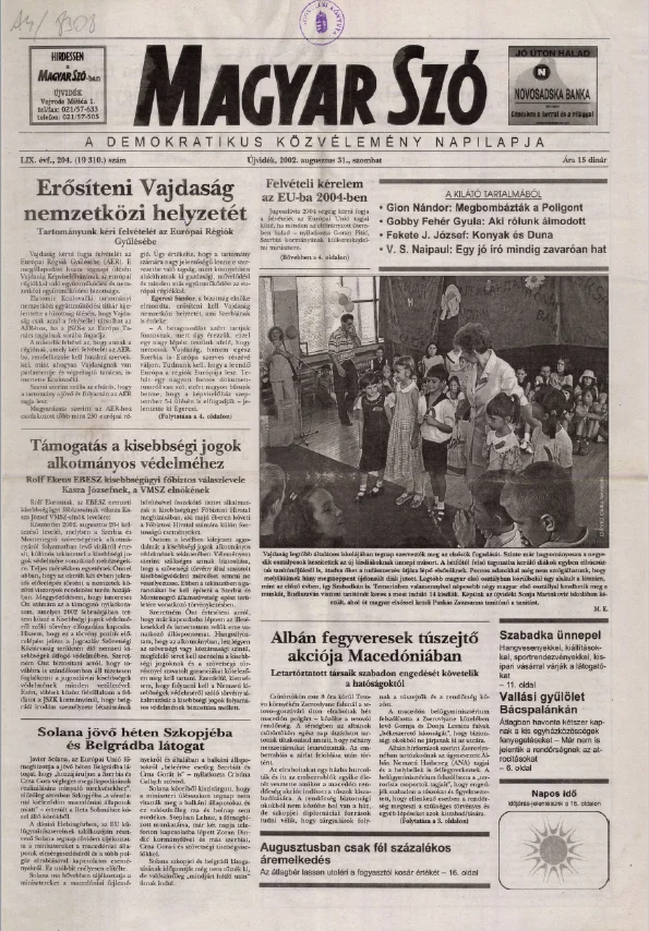 Magyar Szó, 59. évf. 2002. augusztus 31. 204. sz. 1–16. oldal
