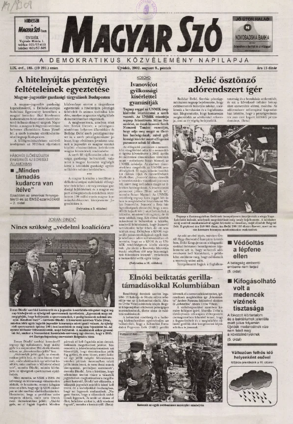 Magyar Szó, 59. évf. 2002. augusztus 9. 185. sz. 1–16. oldal