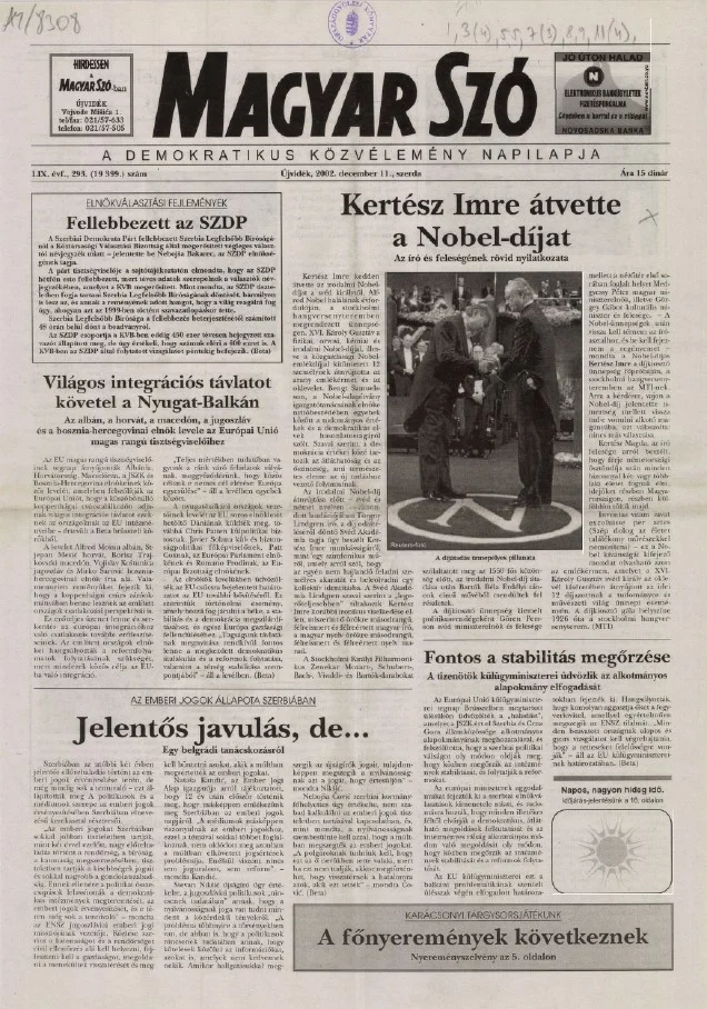 Magyar Szó, 59. évf. 2002. december 11. 293. sz. 1–16. oldal