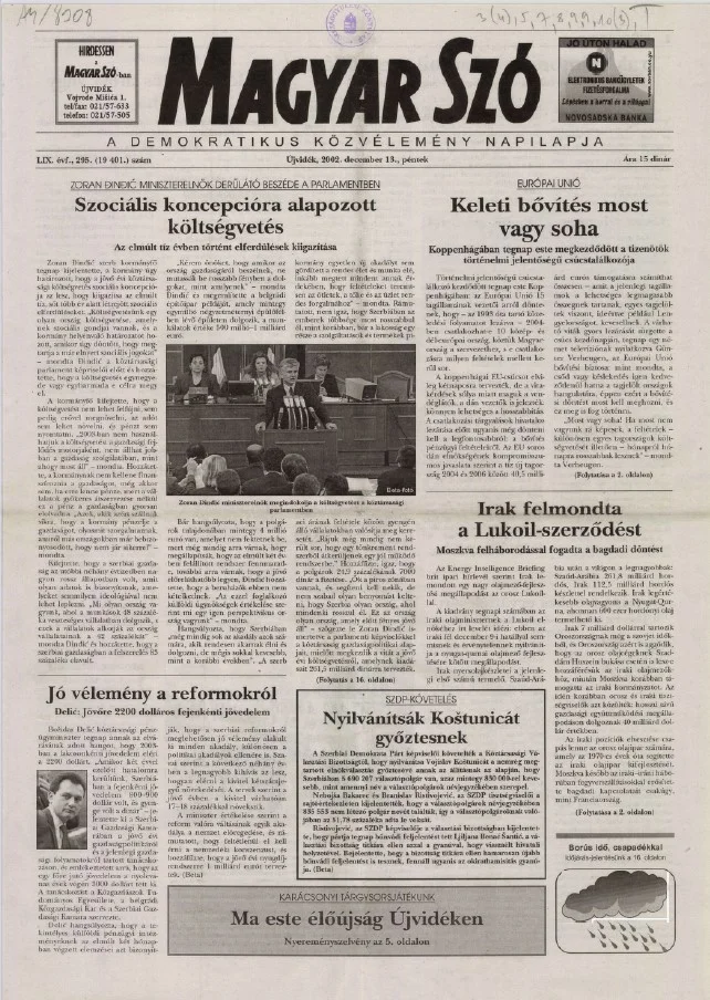 Magyar Szó, 59. évf. 2002. december 13. 295. sz. 1–16. oldal