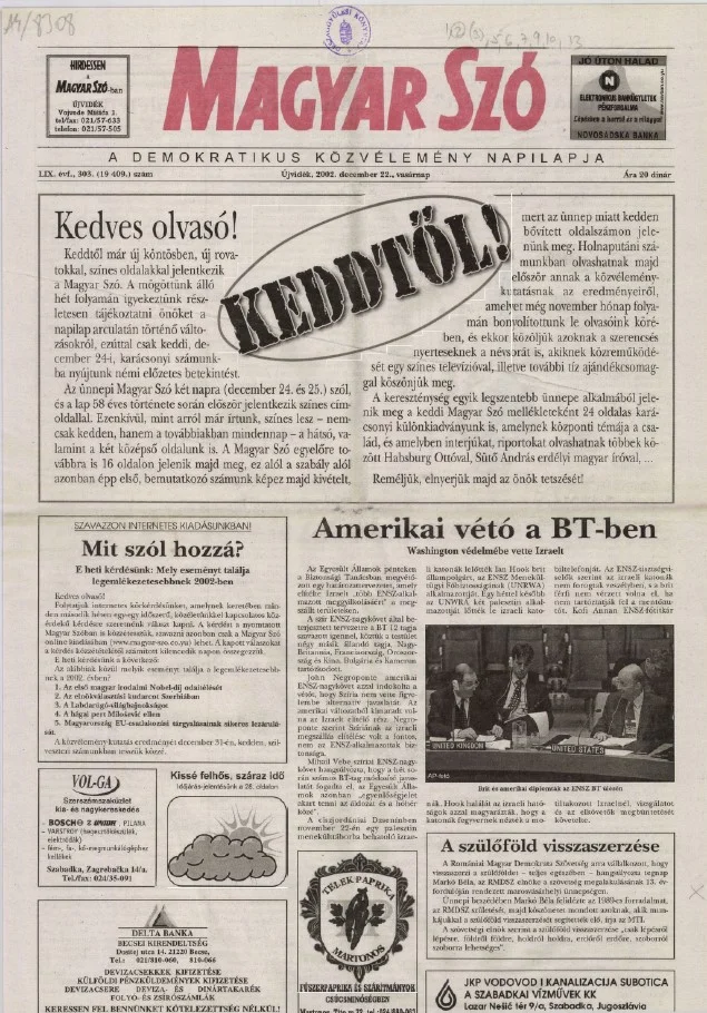 Magyar Szó, 59. évf. 2002. december 22. 303. sz. 1–28. oldal