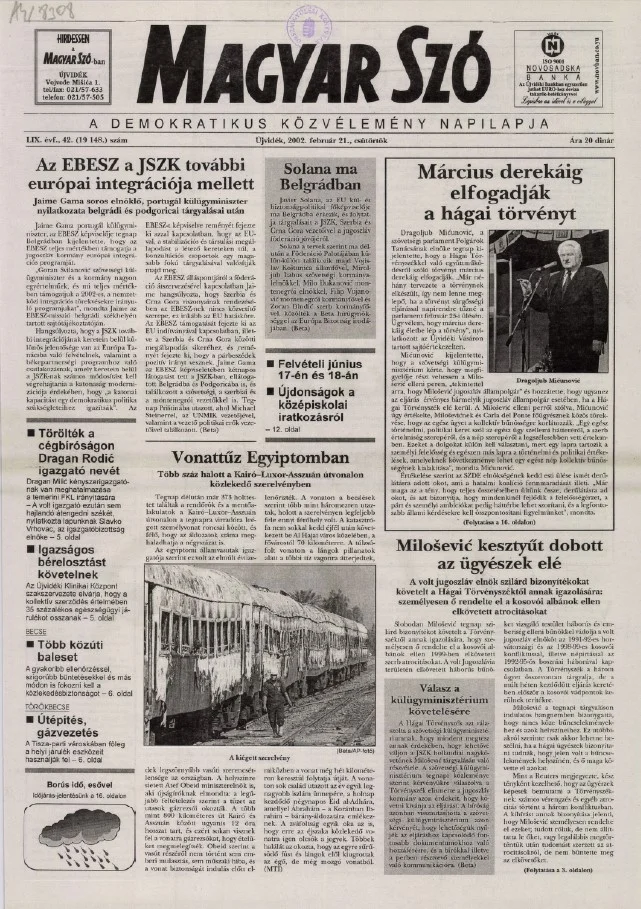 Magyar Szó, 59. évf. 2002. február 21. 42. sz. 1–16. oldal