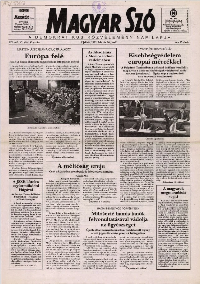 Magyar Szó, 59. évf. 2002. február 26. 47. sz. 1–16. oldal
