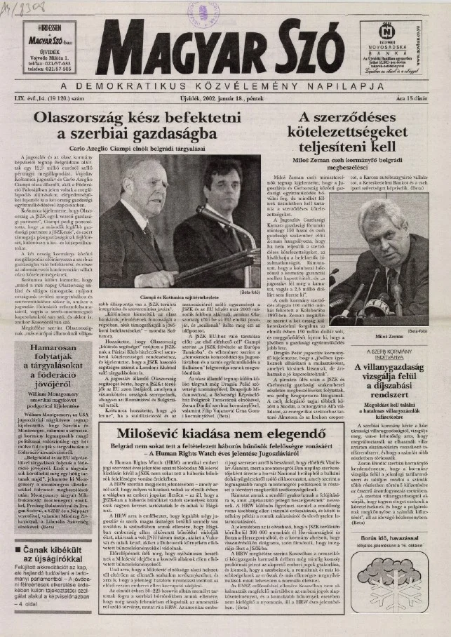 Magyar Szó, 59. évf. 2002. január 18. 14. sz. 1–16. oldal