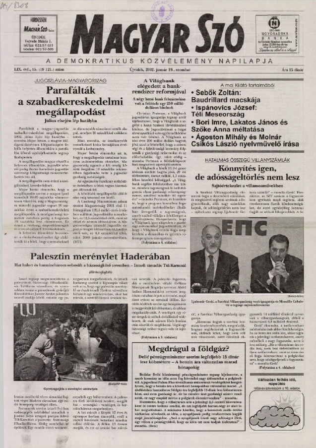 Magyar Szó, 59. évf. 2002. január 19. 15. sz. 1–16. oldal