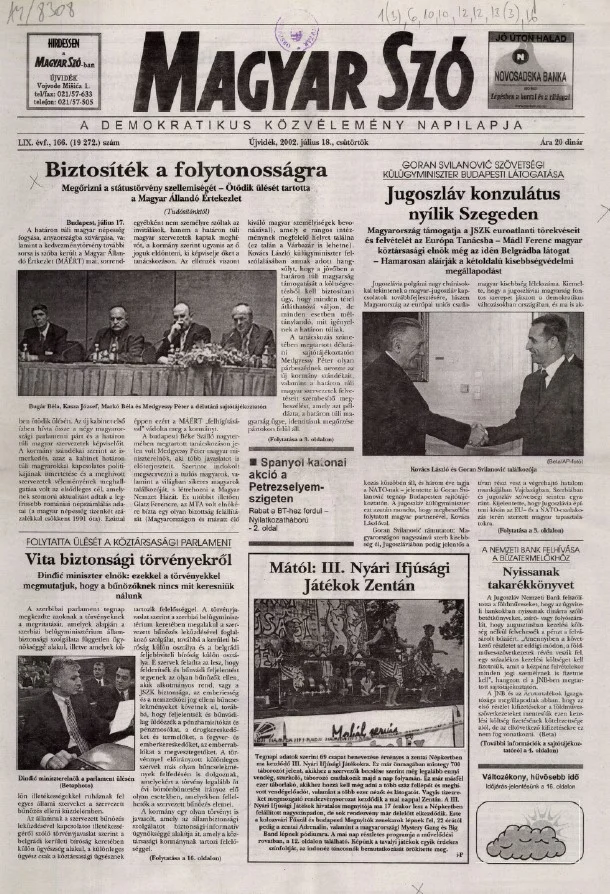 Magyar Szó, 59. évf. 2002. július 18. 166. sz. 1–16. oldal