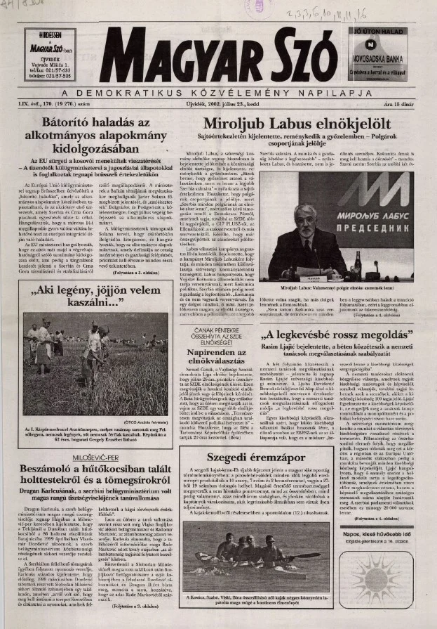 Magyar Szó, 59. évf. 2002. július 23. 170. sz. 1–16. oldal