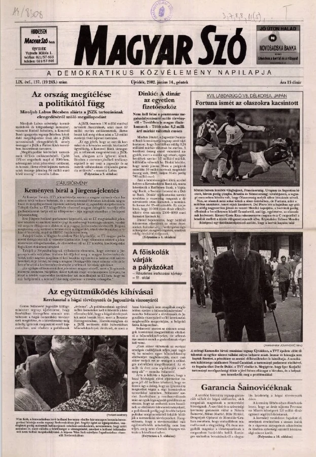 Magyar Szó, 59. évf. 2002. június 14. 137. sz. 1–16. oldal