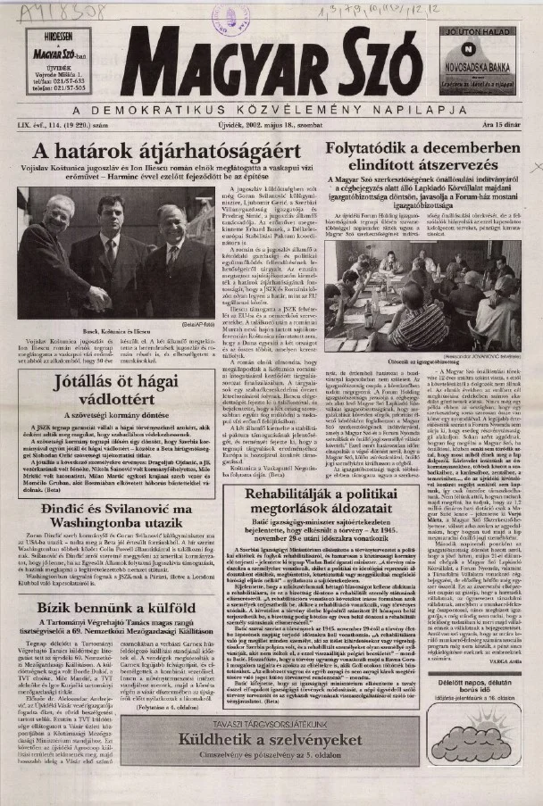 Magyar Szó, 59. évf. 2002. május 18. 114. sz. 1–16. oldal
