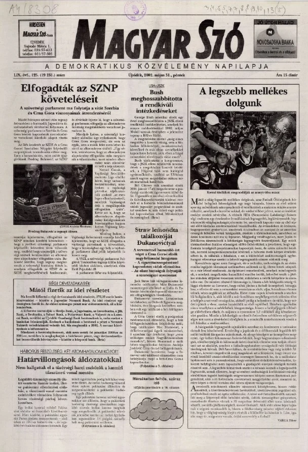 Magyar Szó, 59. évf. 2002. május 31. 125. sz. 1–16. oldal