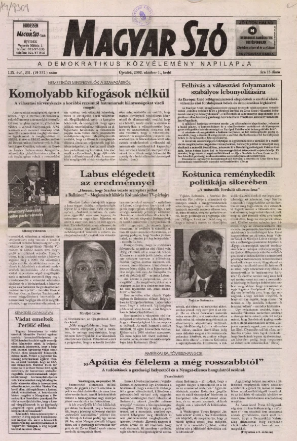 Magyar Szó, 59. évf. 2002. október 1. 231. sz. 1–16. oldal