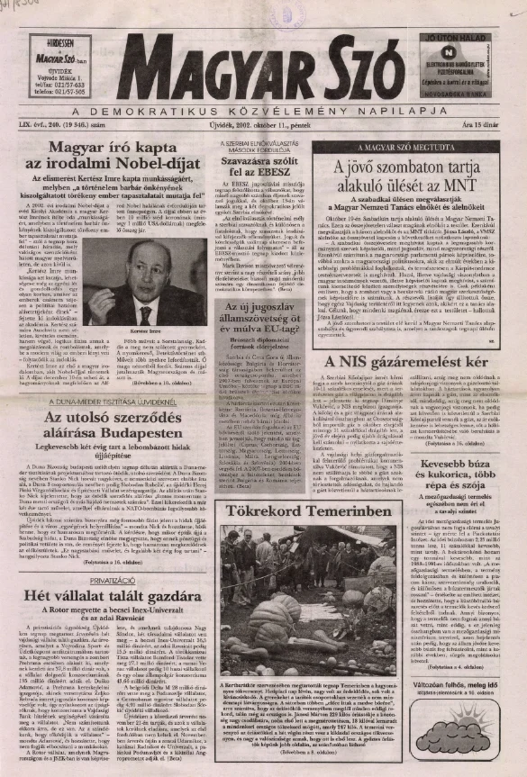 Magyar Szó, 59. évf. 2002. október 11. 240. sz. 1–16. oldal