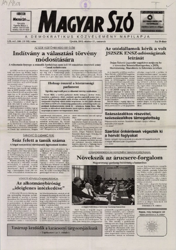 Magyar Szó, 59. évf. 2002. október 17. 246. sz. 1–16. oldal