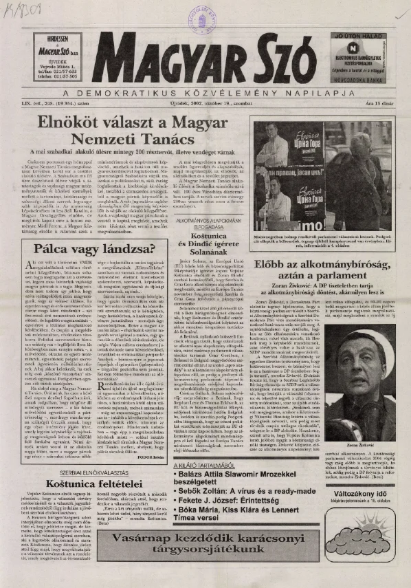 Magyar Szó, 59. évf. 2002. október 19. 248. sz. 1–16. oldal