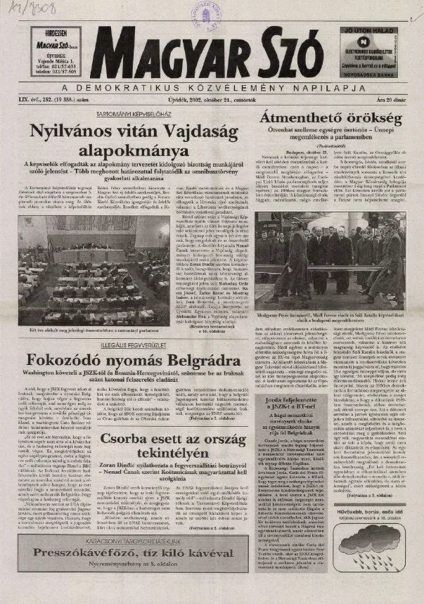 Magyar Szó, 59. évf. 2002. október 24. 252. sz. 1–16. oldal