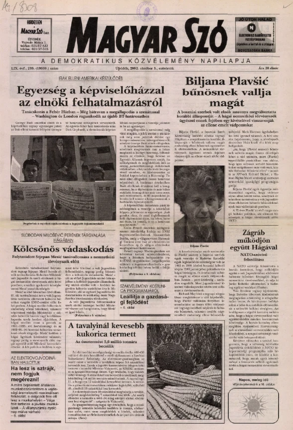 Magyar Szó, 59. évf. 2002. október 3. 233. sz. 1–16. oldal