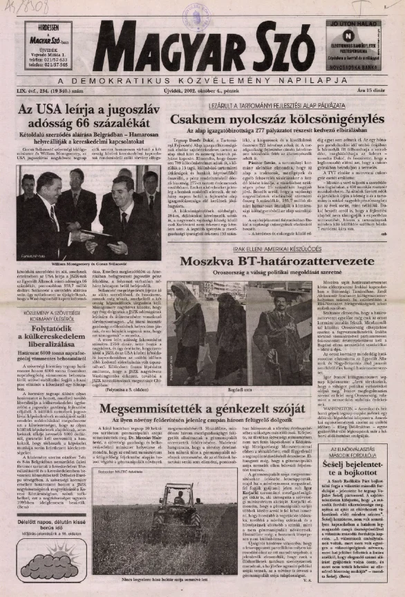 Magyar Szó, 59. évf. 2002. október 4. 234. sz. 1–16. oldal