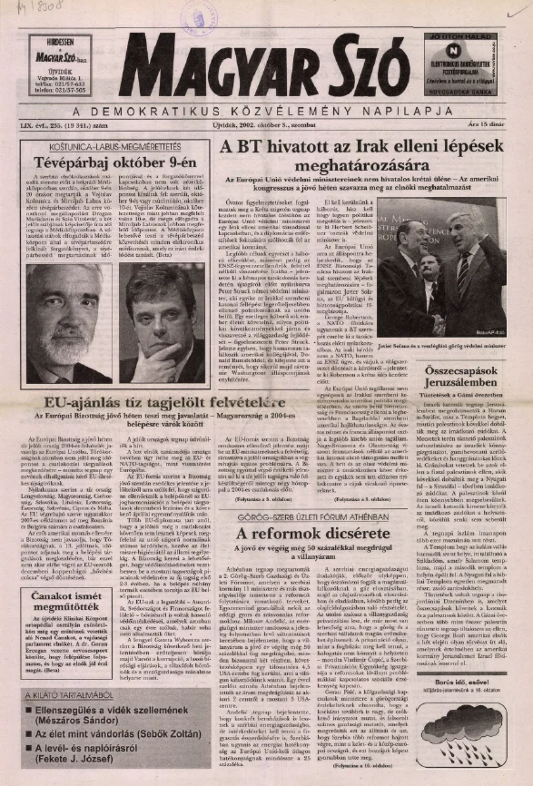 Magyar Szó, 59. évf. 2002. október 5. 235. sz. 1–16. oldal