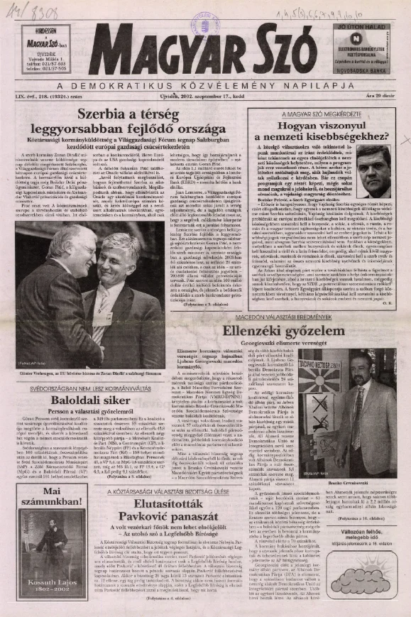 Magyar Szó, 59. évf. 2002. szeptember 17. 218. sz. 1–16. oldal