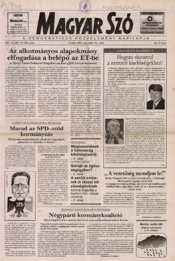 Magyar Szó, 59. évf. 2002. szeptember 24. 224. sz. 1–16. oldal