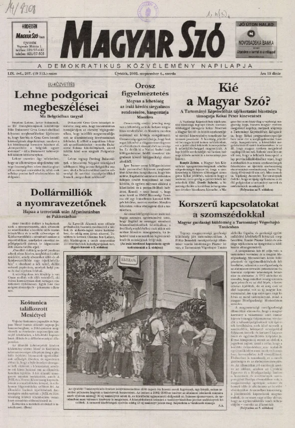 Magyar Szó, 59. évf. 2002. szeptember 4. 207. sz. 1–16. oldal