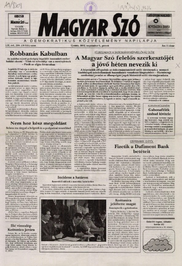 Magyar Szó, 59. évf. 2002. szeptember 6. 209. sz. 1–16. oldal