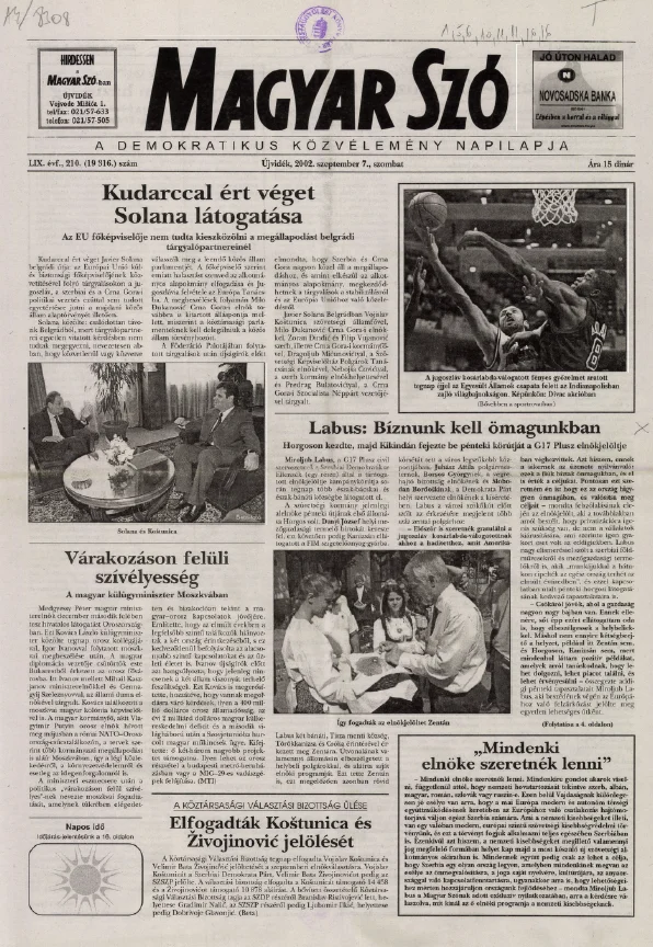 Magyar Szó, 59. évf. 2002. szeptember 7. 210. sz. 1–16. oldal