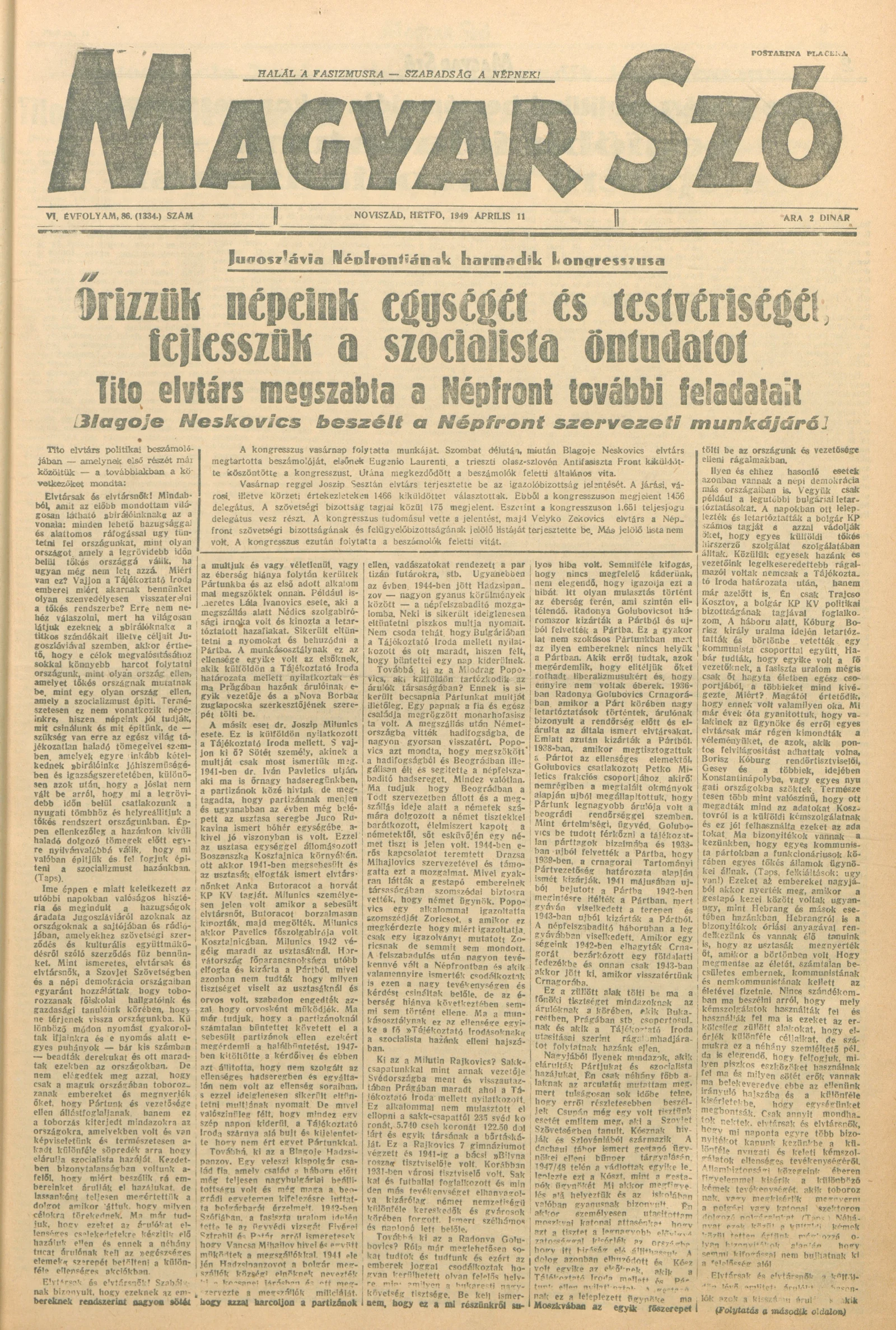 Magyar Szó, 6. évf. 1949. április 11. 86. sz. 1–6. oldal