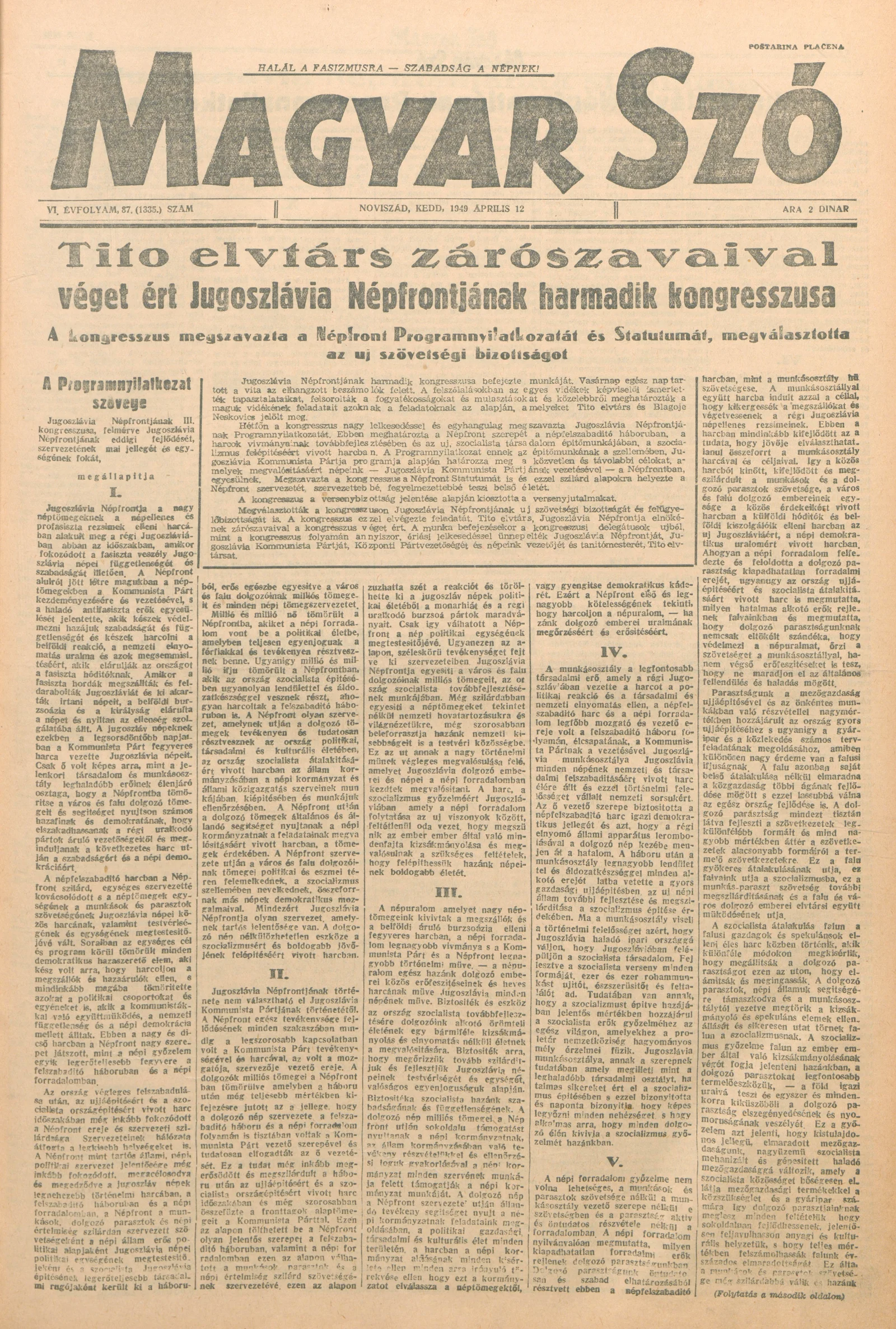 Magyar Szó, 6. évf. 1949. április 12. 87. sz. 1–6. oldal