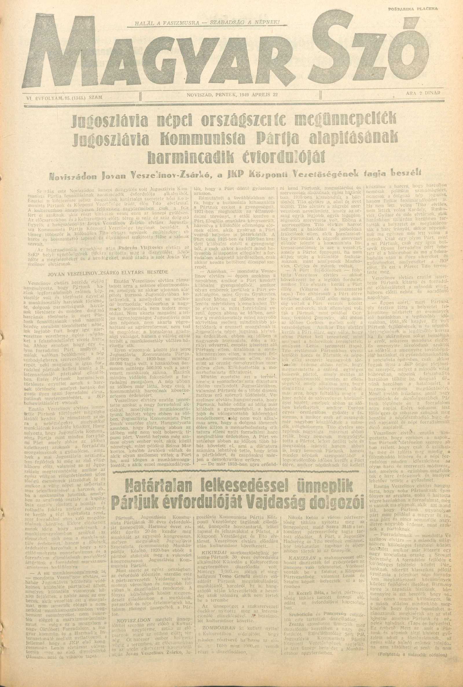 Magyar Szó, 6. évf. 1949. április 22. 95. sz. 1–4. oldal