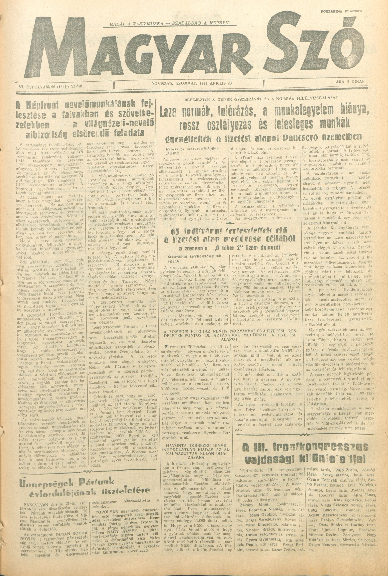 Magyar Szó, 6. évf. 1949. április 23. 96. sz. 1–4. oldal