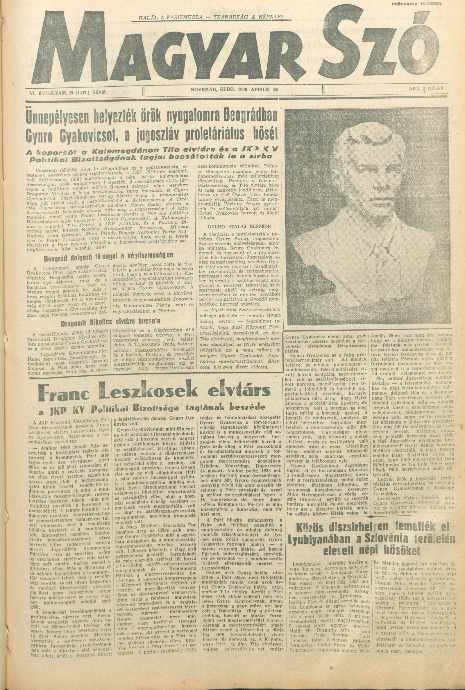 Magyar Szó, 6. évf. 1949. április 26. 99. sz. 1–4. oldal