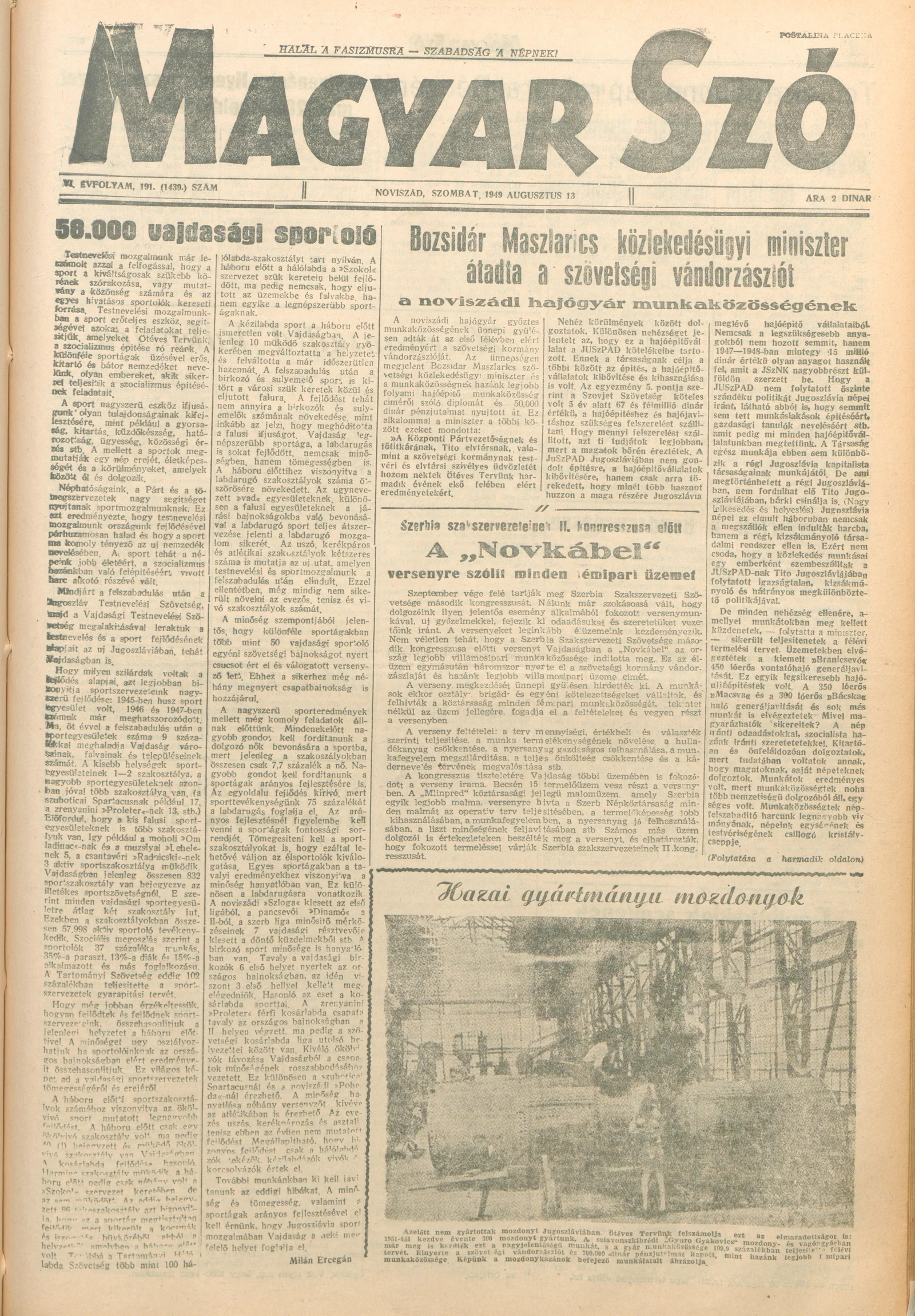 Magyar Szó, 6. évf. 1949. augusztus 13. 191. sz. 1–4. oldal